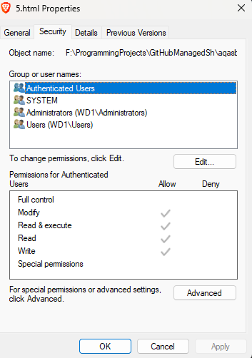 Permissions for this file in Windows